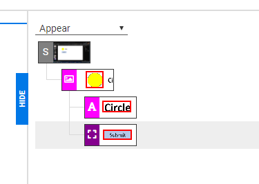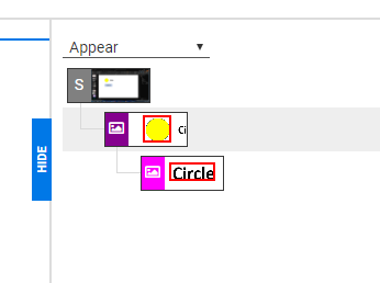 Each group or component is a single row consisting of an icon indicating its type (see below) and an image of the area around the object. Right-clicking on a row will display a menu of actions for that component.
