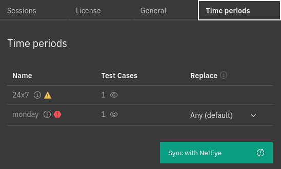 Furthermore, the Sync with NetEye button allows allows you to update the time periods present on the Alyvix Node based on their definition in the Director.