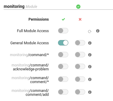 The actions that a NetEye user can perform on the Alyvix module are based on the user role, defined by the NetEye user permissions. The roles are assigned based on the user’s IcingaWeb2 permissions as follows: